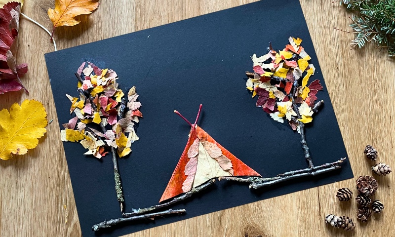 Cola uma copa de árvore feita de recortes de folhas sobre os galhos.