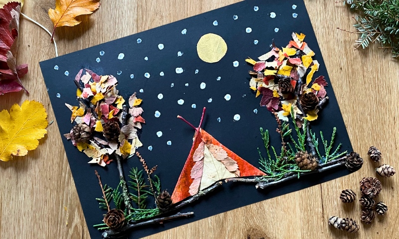 Recorta uma lua de uma folha e pinta pequenas estrelas no céu.