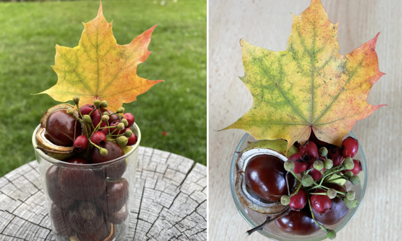 Se recolheste apenas uma pequena quantidade de materiais outonais ou preferes fazer algo pequeno, enche um frasco com materiais outonais.