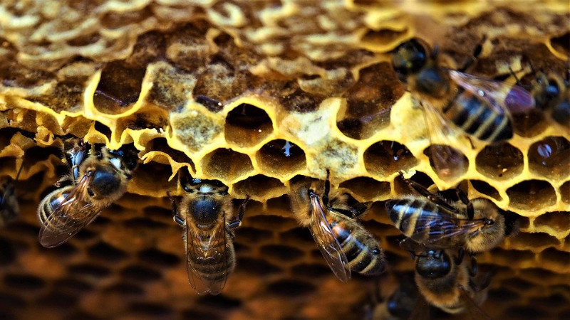 Embora seja absolutamente escuro na colmeia, as abelhas constroem células de cera perfeitas.