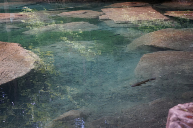 A truta castanha tem um esconderijo favorito onde pode se esconder bem, pode ser numa planta aquática, uma raiz de árvore ou uma pedra no leito do riacho. Isso as protege dos inimigos como a garça. E lá elas também encontram a sua comida favorita: camarão de água doce, insetos aquáticos, larvas, e insetos que caíram na água.