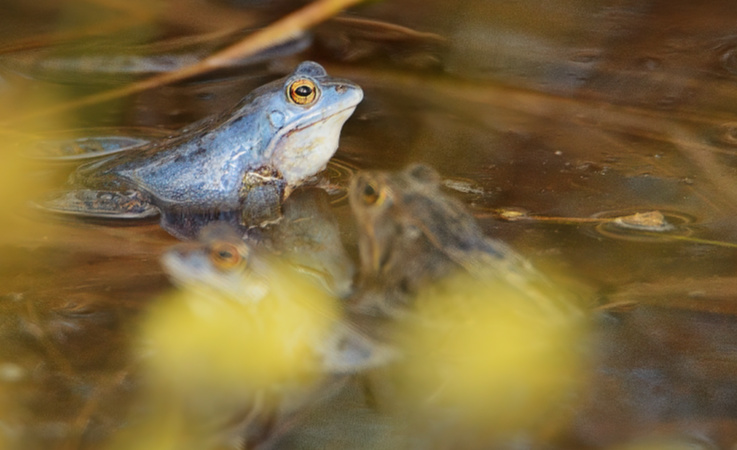 Quando os sapos machos chegam à área da desova, eles ainda são castanhos e não diferem em cor da fêmea do sapo. Se depois o tempo ficar mais quente, as fêmeas castanhas também vêm para a área da desova. E então os machos castanhos ficam azuis.