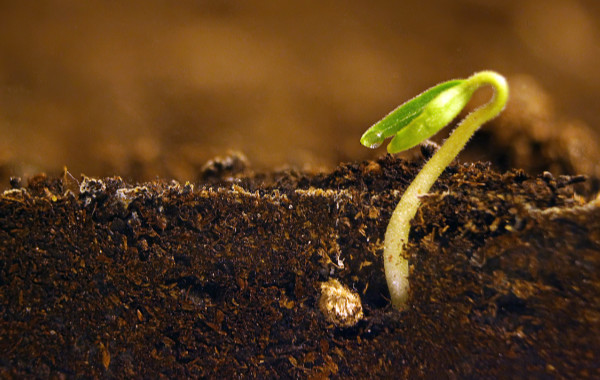 Na terra húmida, a semente secretamente muda completamente, onde ninguém pode observá-la.