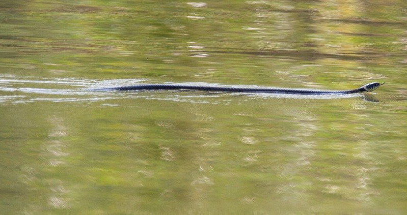 A cobra da grama cresce até 1,5 m de comprimento (aproximadamente da tua altura :-)) e não é tóxica. Então não precisas de ter medo dela.