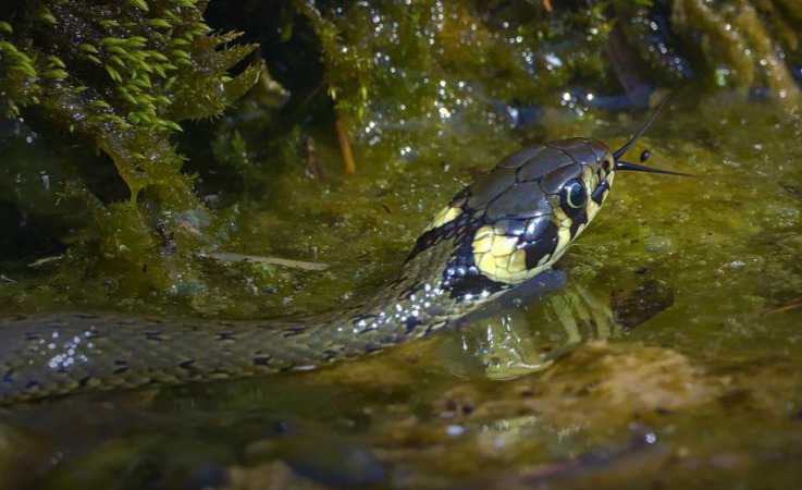 A coisa boa sobre a cobra da grama é que podes reconhecê-la claramente através destas duas características: