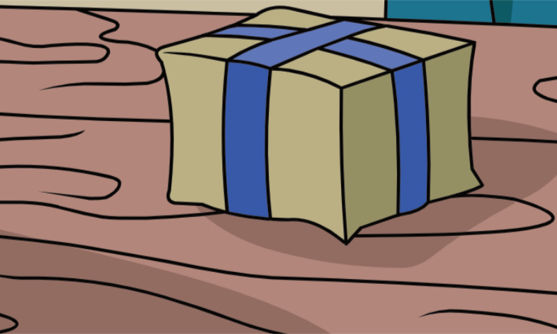 Adivinha o que ele encontrou dentro do pacote!