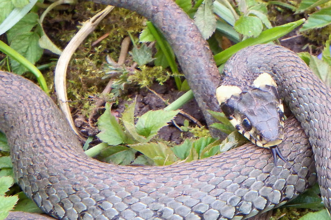 O resto do corpo pode variar em cores de azeitona escura e cinza clara com listras laterais escuras ("Cobra da grama estéril"). Não importa como o corpo é colorido, o remendo da nuca permanece claramente visível. Isso a torna claramente distinguível de todas as outras cobras nativas da Europa Central e também do verme lento.