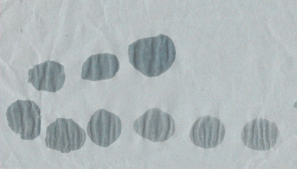 Espera 30 segundos, depois coloca o dedo novamente na água e pressiona-o uma polegada a seguir à primeira que fizeste no papel.
