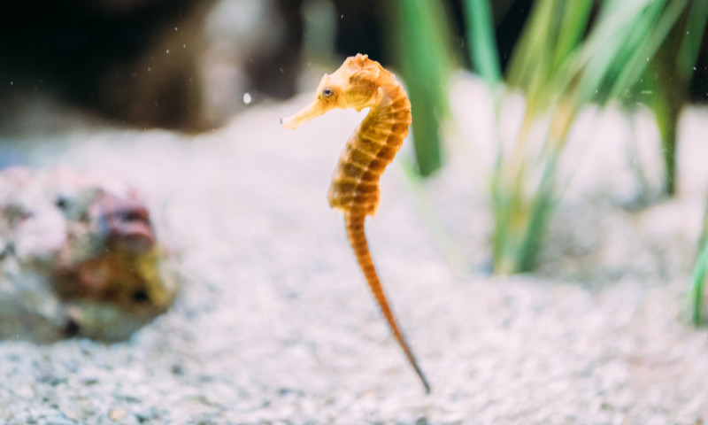 Quando um cavalo-marinho quer nadar para cima, endireita a cauda curva como uma caneta e respira um pouco de ar.